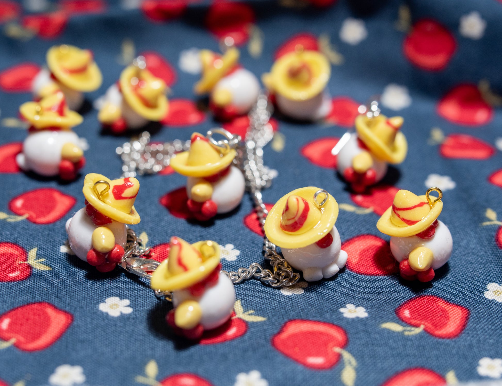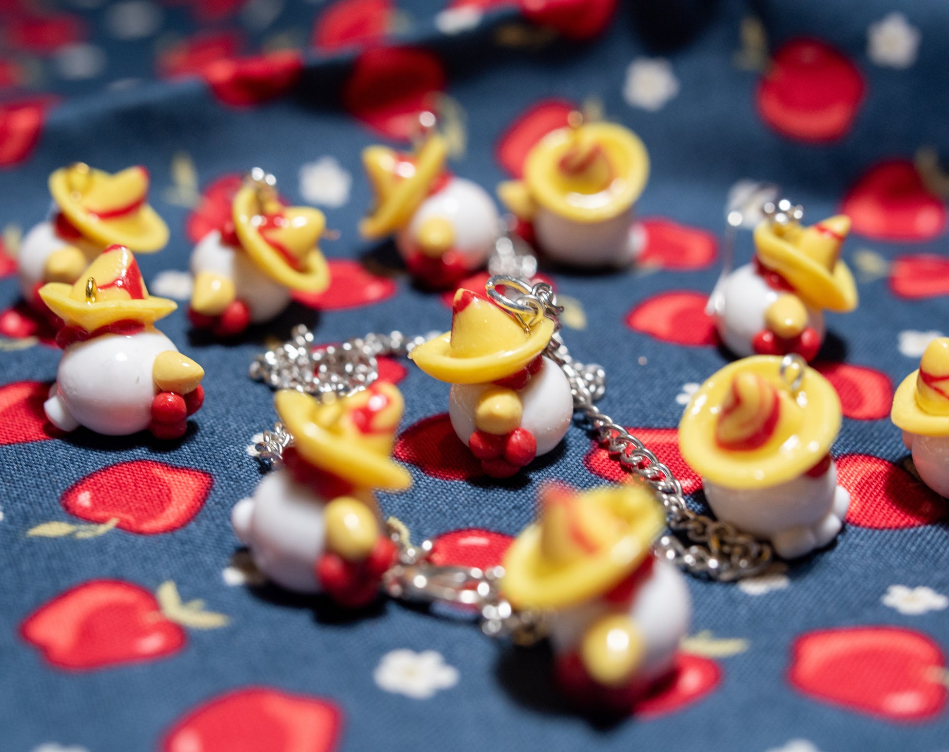 Handmade from polymer clay with a glossy resin finish. Available in silver, gold, and rose gold.